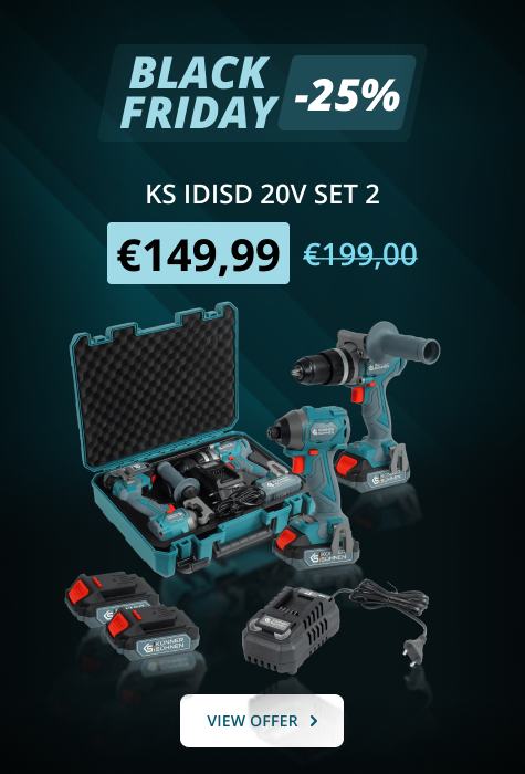 Унифицираната батерийна система от Könner & Söhnen® осигурява максимална мобилност и екологичност. Една батерия пасва на всички инструменти в гамата, което опростява работния процес и намалява разходите. Високият капацитет и бързото зареждане гарантират продължителна работа без прекъсвания.