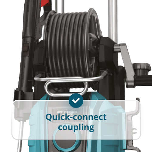• Hose reel with guide frame – simplifies storage and prevents kinks, prolonging hose life.