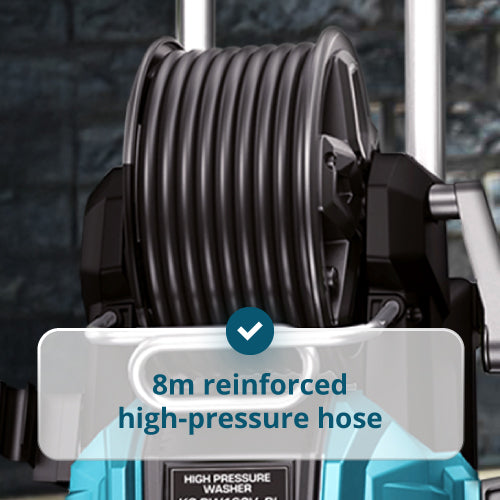 • Durable 8-meter reinforced hose – resists high pressure and mechanical stress for long-term use.