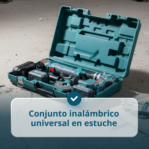 • Conjunto inalámbrico universal en maletín – dos herramientas en un solo conjunto: taladro percutor y amoladora angular con 2 baterías y cargador para diversas tareas domésticas.