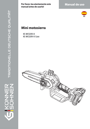 | Equipamiento | Mini motosierra, Embalaje, Manual de instrucciones, Barra guía de 8" (20 cm), Cadena, Botella de aceite |