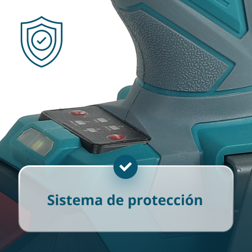 • El sistema de protección garantiza la seguridad de las herramientas y del usuario durante el trabajo, incluyendo protección contra sobrecalentamiento, sobrecarga y descarga excesiva de la batería.