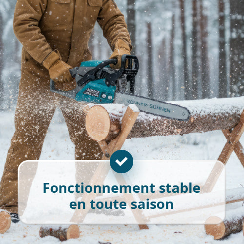 • Fonctionnement stable en toute saison – les modes « Été/Hiver » avec un système de réchauffement du carburateur par air chaud le protègent du gel, garantissant un démarrage fiable et un fonctionnement ininterrompu.