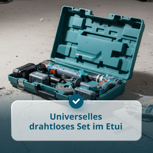 • Universal kabelloses Set im Koffer – zwei Werkzeuge in einem Set: eine Schlagbohrmaschine und ein Winkelschleifer mit 2 Akkus und einem Ladegerät für verschiedene Haushaltsaufgaben.