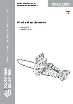 | Kompletność* | Mini piła łańcuchowa, Opakowanie, Instrukcja obsługi, 2× Prowadnica 12" (30 cm), 2× Łańcuch, Ładowarka do akumulatorów 20V KS C45A, Akumulator litowy 20V 4Ah |