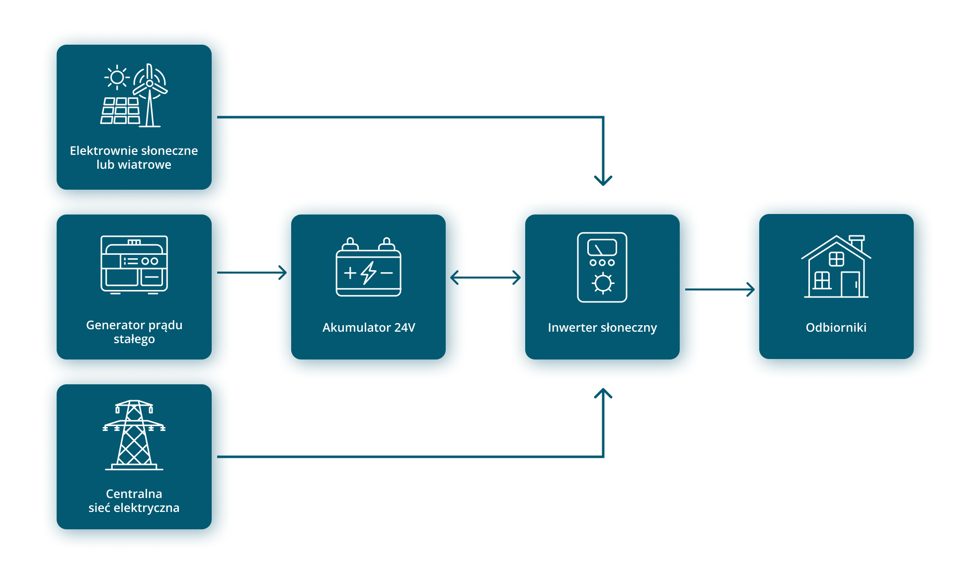 • Idealne rozwiązanie do ładowania akumulatorów w systemach 24V, takich jak elektrownie słoneczne, systemy monitoringu, systemy alarmowe czy pojazdy w trybie postoju.