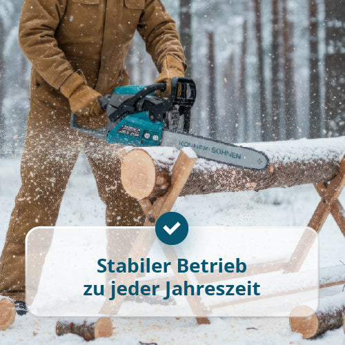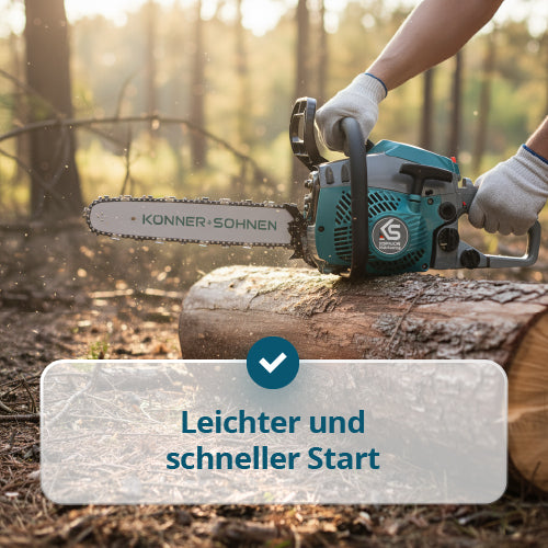 • Leichter und schneller Start – das System kombiniert eine automatische STOP-Taste, eine manuelle Kraftstoffpumpe (Primer) und einen Starter mit zusätzlicher Feder und stellt sicher, dass die Kettensäge jederzeit einsatzbereit ist.