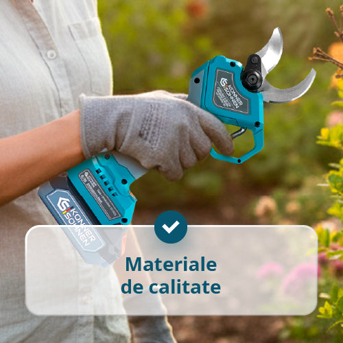• Flexibilitate în lucru — două lățimi de deschidere a lamelor (20/40 mm) permit adaptarea la diferite diametre ale ramurilor, economisind timp și energie a acumulatorului.