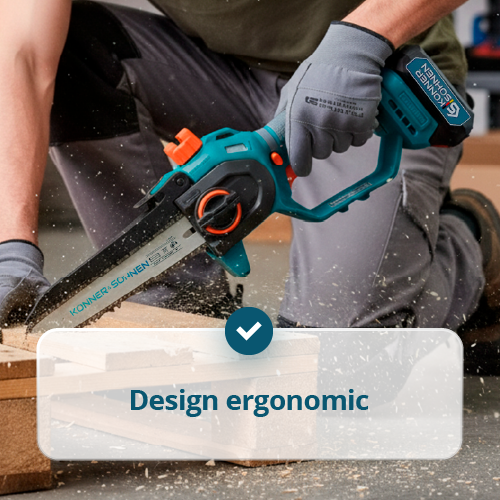 • Werkzeuglose Kettenspannung – ermöglicht schnelles Spannen oder Wechseln der Kette direkt vor Ort ohne Schraubenzieher oder Schlüssel.