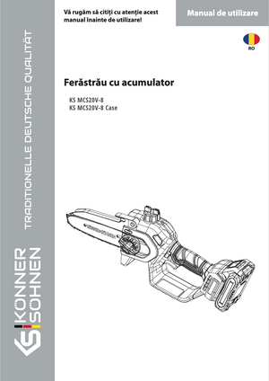 | Pachetul include | Mini-ferăstrău, Ambalaj, Instrucțiuni, 2 x Lamă de ghidaj 8" (20 cm), 2 x Lanț, Sticlă pentru ulei, Încărcător pentru baterii 20V 2,4A KS C24A, Acumulator litiu 20V 2,0 Ah |