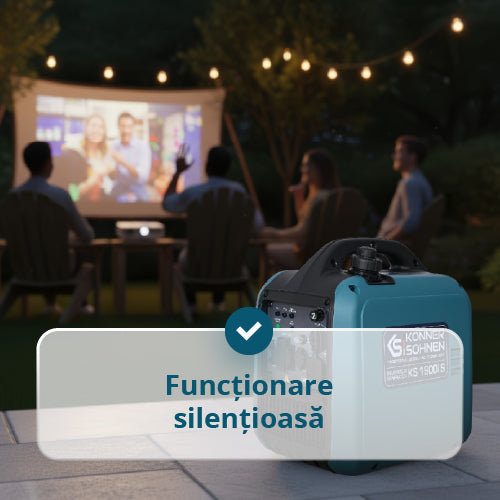 • Dimensiuni compacte. Dimensiunile reduse permit transportul generatorului oriunde. Este un partener de încredere în timpul campingului, pescuitului, drumețiilor sau pentru mici lucrări în garaj sau atelier, oferind energia necesară în orice situație.