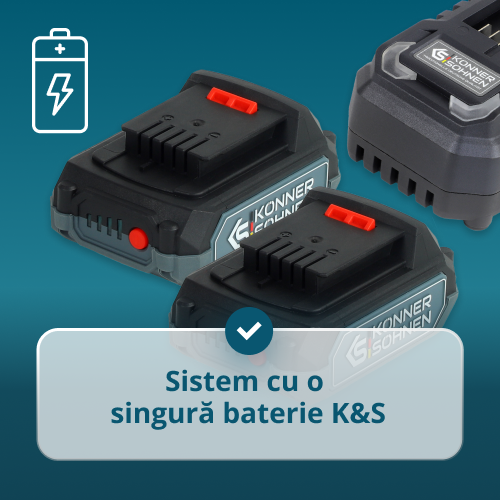 • Lucru fără întreruperi – prezența a două baterii de 20 V 2 Ah permite încărcarea uneia în timp ce lucrați cu cealaltă.