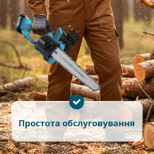 • Механізм натягування ланцюга «без інструментів» — дає змогу швидко підтягнути або замінити ланцюг прямо на робочому місці, без використання викруток чи ключів.