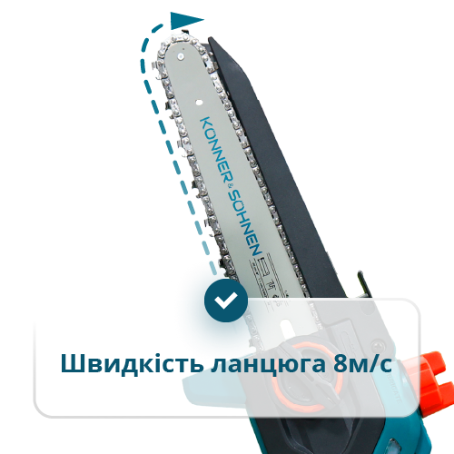 • 8-Zoll-Schiene und 8 m/s Kettengeschwindigkeit – schneidet mühelos Äste bis zu 100 mm Durchmesser, ideal für Baumpflege und Holzarbeiten.