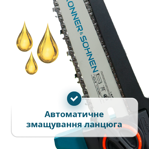 • Automatische Kettenschmierung – sorgt für kontinuierliche Schmierung, reduziert den Verschleiß und verlängert die Lebensdauer der Kette und Führungsschiene.